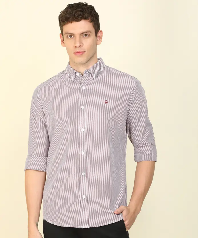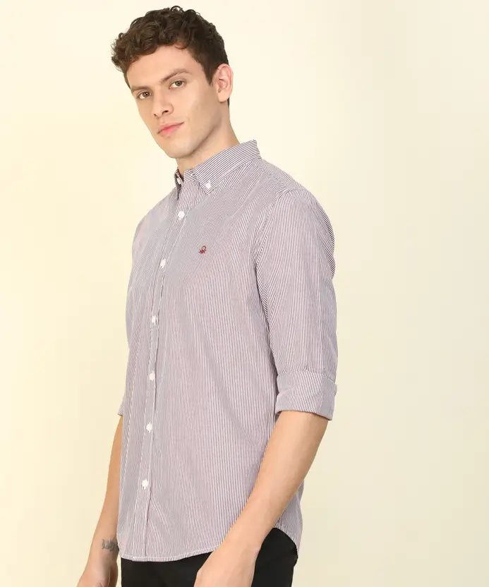 Men Slim Fit Striped Button Down Collar Casual Shirt
