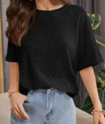 Cute Waffle Knit Tops-this awesome tops for women is made by Cotton and spandex blend waffle knit fabric, it is light weighted, stretchy and very soft, the fabric of this waffle top drapes nicely, making it looks fashionable